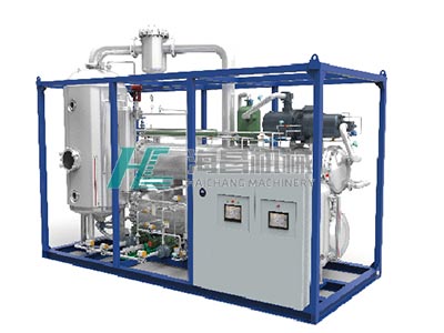 眾所周知,化工、醫藥、生物提取行業內溶媒的蒸發、蒸餾、濃縮裝置都是高能耗的,能耗在這些裝置的運行成本中占很大的比例,因此單位能耗的降低和優化對降低整個運行成本至關重要;而現有的MVR多效蒸發機組雖然在運行能耗上有所降低,但針對于有機溶劑回收方面,由于易燃易爆的氣態溶劑與高速運轉的壓縮機葉輪接觸,所以存有安全隱患,況且安裝維護比較麻煩,占地面積大,操作也不便利。針對于這些狀況,我公司研制了這款安全、節能、環保的閉式真空溶劑蒸發模塊。